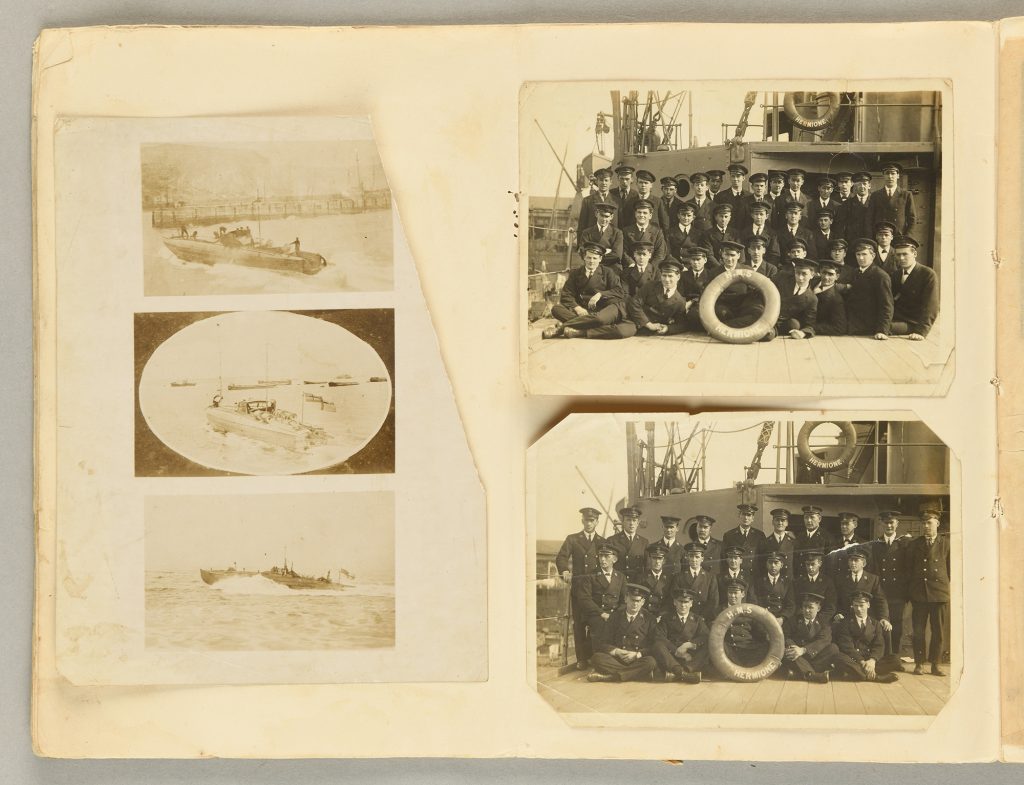 Messenger served within the Royal Navy as a motor mechanic aboard Motor Launch (ML) 241 during World War One. ML 241 was present at the raid in Zeebrugge in April 1918 and at Ostend in May 1918. In our collection we have two photograph albums which he compiled during the First World War. This particular album contains photographs of battleships, motor launches, and submarines.