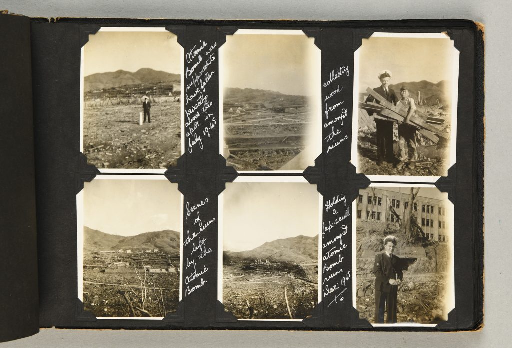 Graham served as a Cook on HMS ACHILLES during the Second World War and managed to acquire film, which was expensive, through a trade of some tinned peaches from his ship’s galley. This allowed him to capture many original images in Japan after the surrender. His album includes views from Tokyo Bay, portraits of locals, the destruction wrought by bombing, and visiting snow-covered Nikko.